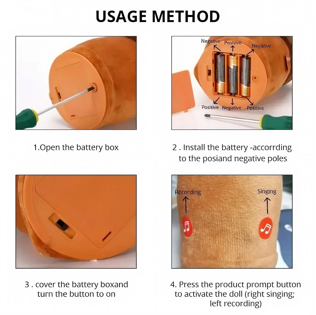 ✅ Battery Operated: Includes English songs, dancing, lighting, and recording features (3 x AA batteries required, not included).